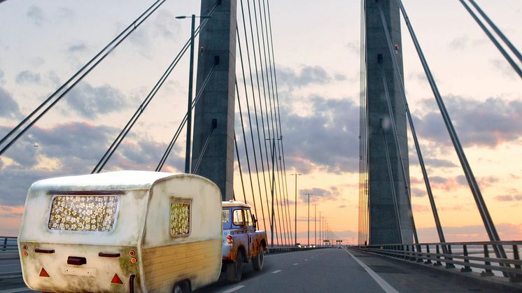 Ekipaget, som består av en fullpackad landrover och en husvagn, har färdats från Mossy Bottom i Storbritannien via Tyskland och Danmark vidare till Sverige. På Facebook har trogna fans kunnat följa tv-stjärnans omtalade roadtrip och tusentals beundrare hade samlats vid brofästet för att hälsa honom och hans flock välkomna.