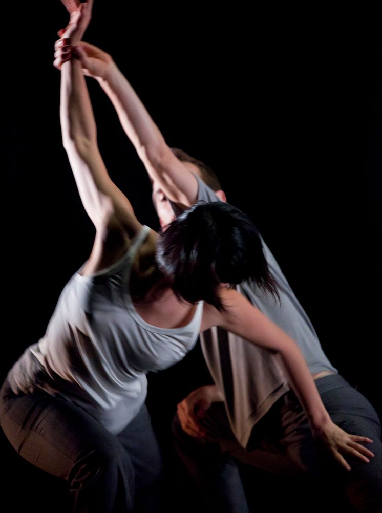 On Invisible Pause i koreografi av Christopher Arouni som ingår i Skånes Dansteaters föreställning HAZE. I bild dansarna Hazuki Kojima och Samuel Denton.
