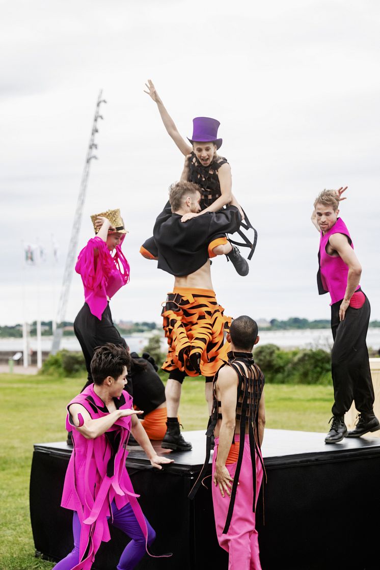 Domino i koreografi av Erika Silgoner. Premiär i Daniaparken, Malmö 1 juni 2024. Turné i Skåne och Stockholm. I bild: Jeanne Delsus, Yousin Song, Jure Gostinčar, Hanna Nussbaumer, Michael Marquez, Tiemen Stemerding.