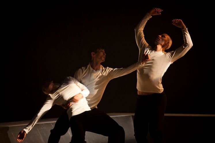 no-no i koreografi av Kenneth Kvarnström ingår i Skånes Dansteaters dansföreställning Hemma hos. I bilden Jing Yi Wang, Kang Ma och Peder Nilsson. Hemma hos spelas på Skånes Dansteater 20 nov-12 dec.