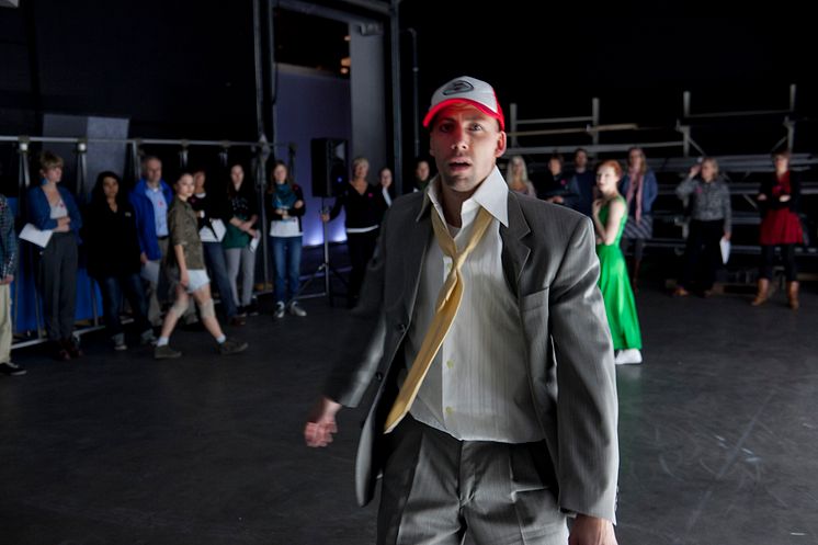 Small Acts i koreografi av Ben Wright ingår i Skånes Dansteaters dansföreställning Hemma hos. I förgrunden dansaren Peder Nilsson. Hemma hos spelas på Skånes Dansteater 20 nov-12 dec.