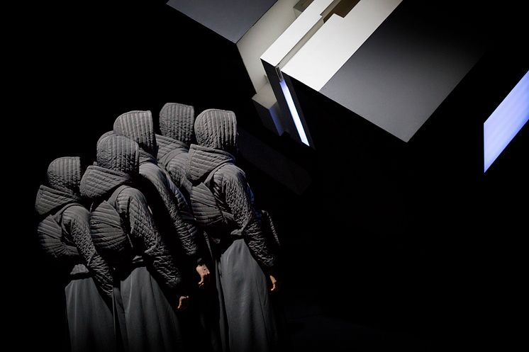 Från föreställningen Above & Below. Bilden är från föreställningens ena verk Sentinel av koreograf Antony Hamilton. I bild Sarah Bellugi Klima, Hazuki Kojima, Astrid Bramming, Peter Jansson, Graham Adey, Romane Petit.
