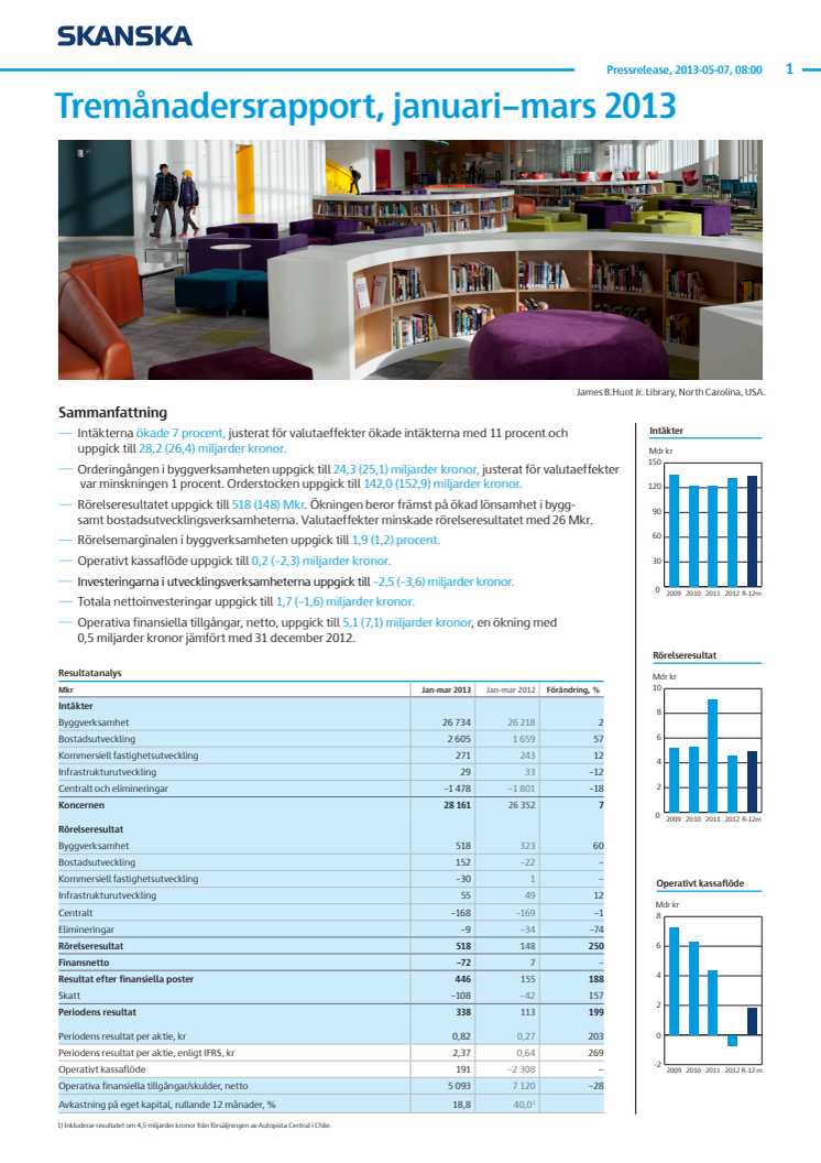 Tremånadersrapport, januari–mars 2013