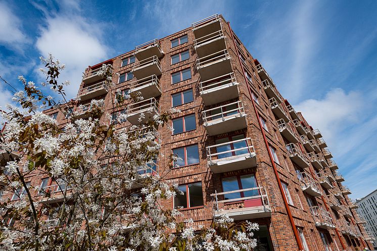 Inom några månader är SKBs första hus utanför Stockholms län klart för inflyttning. I kvarteret Docenten i Uppsala har hållbarhetsarbetet tagits ett steg längre. Huset återvinner och cirkulerar energi från spillvatten, de boende kan tvätta utan tvättmedel, mellan sedumplanteringar på taket finns solceller som genererar el och bin ska bo i insektshotell.