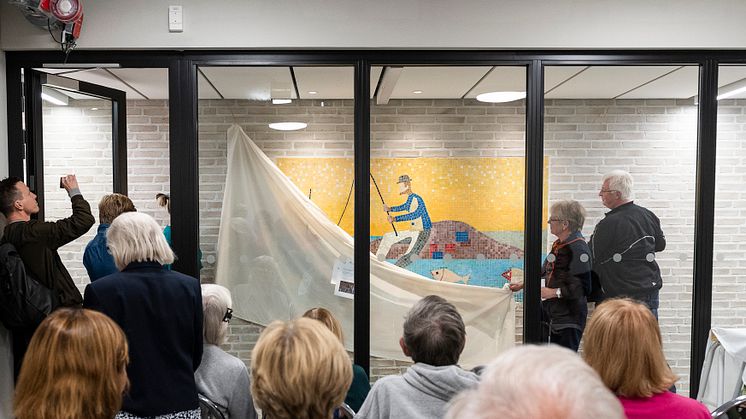 – Konsten ska leva över tid och ha koppling till platsen eller kvarterets namn. Därför blev det ett lätt val att bevara och renovera mosaiken, som nu pryder en av väggarna på entréplan, säger fastighetsutvecklingschef Johan Jarding.