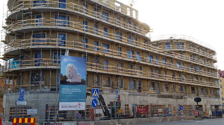 SKBs unika kvarter Basaren med 44 kooperativa hyresrätter tar form på Hantverkargatan, Kungsholmen. Fastighetens två runda, tornliknande delar sträcker sig nu upp till plan sju. Aldrig tidigare har intresset för en av SKBs nyproduktioner varit så stort som för Basaren – över 3 000 medlemmar anmälde sitt intresse för att bo här.