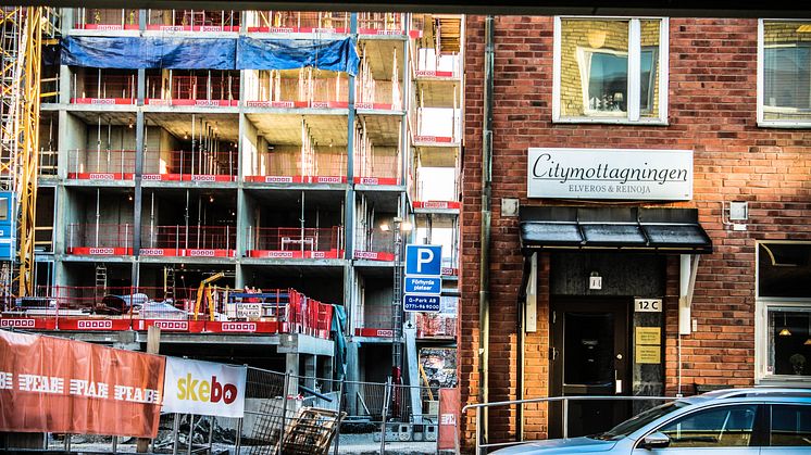 – Vi har en väldigt positiv utveckling just nu. Det är svårt att säga varför, men kombinationen av konjunkturer, vad vi gör och vad omvärlden gör spelar in. Det har skapat en positiv spiral där det ena ger det andra. Det är givetvis en angenäm situation, men det skapar viss huvudbry. Översiktsplanen från 2011 dimensionerades för 80 000 personer, men byggde på att det skulle byggas på ett något annorlunda sätt. Nu är nästan alla tomter för villor och flerfamiljshus i centrala Skellefteå slutsålda och en fortsatt utveckling kräver förtätnings- lösningar. Skebos Oden-byggnad och HSB:s kommande höghus vid Lasarettsvägen är tydliga exempel på det.