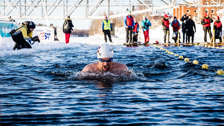 I genomsnitt tar det cirka 20 sekunder att tävlingssimma 25 meter i en isvak i centrala Skellefteå. Det vet man, för tävlingssimmat om vintern, i vattentemperaturer strax över nollan har man gjort här sedan 2012. Deltagarna tävlar från 25 till 200 meter i disciplinerna bröst- och frisim samt i en mer avslappnad hatt- och mösstävling.
