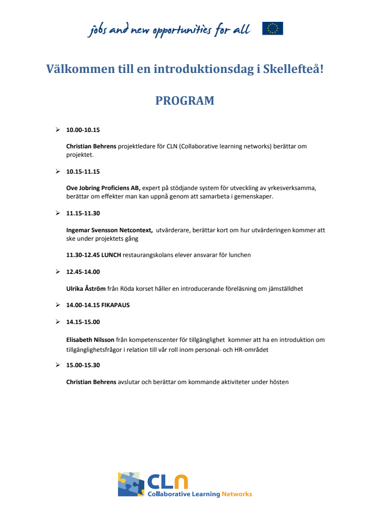 Inbjudan till avstamp för CLN-projektet, där sammanlagt 250 personer samlas i Skellefteå.
