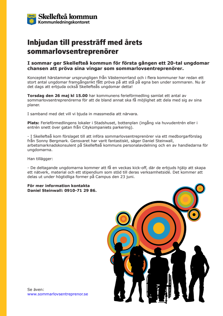 Välkommen på en pressträff om och med årets unga sommarlovsentreprenörer - ett helt nytt koncept för Skellefteå!