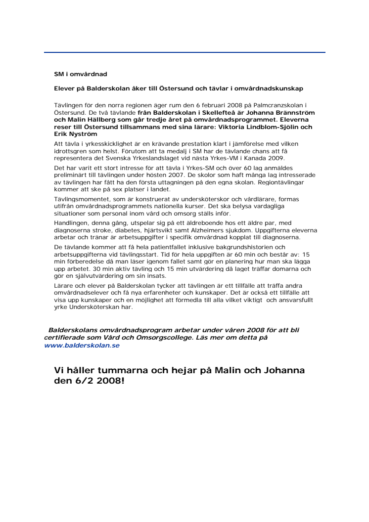 Elever på Balderskolan åker till Östersund och tävlar i omvårdnadskunskap.