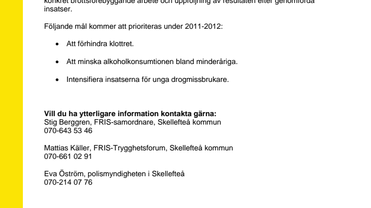 Nytt samverkansavtal mellan Skellefteå kommun och polismyndigheten i Skellefteå för åren 2011-2012
