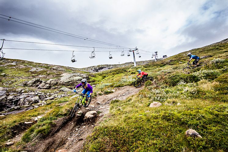 Cykling på olika nivåer erbjuds i Åre Bike Park. Fri publiceringsrätt tillsammans med fotoinformation samt endast i samband med information om SkiStar eller någon av SkiStars destinationer/produkter.