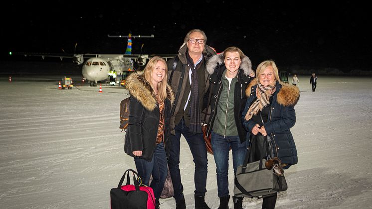 Familjen Nygård flög med första flyget till Sälen från Ängelholm/Helsingborg Airport