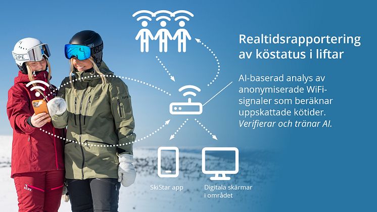 En banbrytande realtidsrapportering av köstatus i liftarna, som testades under påsklovet i Åre, fick mycket positiv respons från gästerna och kommer nu att implementeras på samtliga av SkiStars destinationer. Nära 60 liftar rustas med teknik som utnyttjar kraften i artificiell intelligens (AI) och maskininlärning (ML) i kombination med anonymiserad avläsning av WiFi-signaler, för att förbättra skidupplevelsen. Denna data kommer att vara tillgänglig för gästerna i SkiStar-appen och på digitala skärmar vid liftarna.