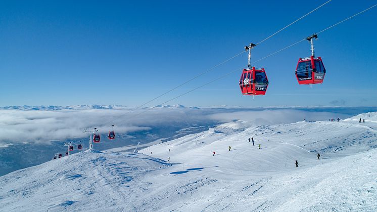 Med Gondolen nås Åres åtråvärda och unika högzon som erbjuder skidåkning ca 1 274 m.ö.h och nära 890 fallhöjdsmeter. Dagsaktuellt snödjup i terräng 25 cm.