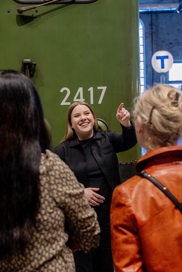 Guidad tur på Spårvägsmuseet. Guide Eijla Berglund. År 2025