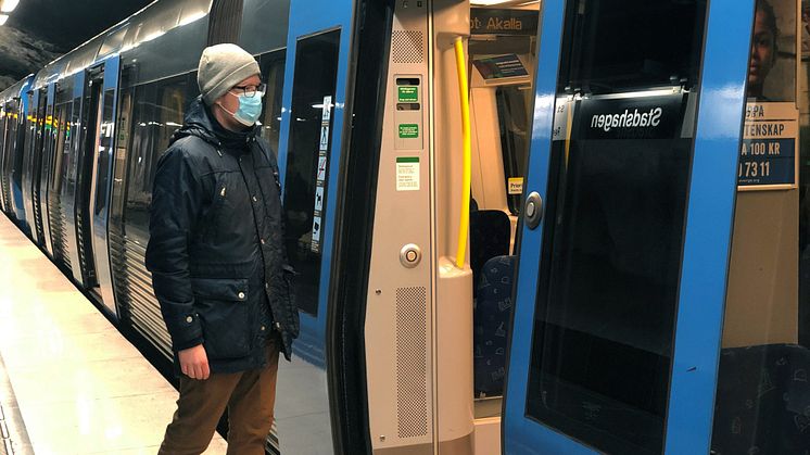 Folkhälsomyndigheten rekommenderar att den som måste resa kollektivt bär munskydd under rusningstid från och med den 7 januari. Rekommendationen gäller för alla som är födda 2004 eller tidigare och som reser under rusningstid (klockan 7–9 och 16–18), när det kan vara svårt att hålla avstånd till andra. Rekommendationen bygger på det personliga ansvaret och behovet av munskydd kan finnas under andra klockslag och dagar när många reser. Därför är det bra att den som reser med SL alltid har med sig ett munskydd att använda vid behov.