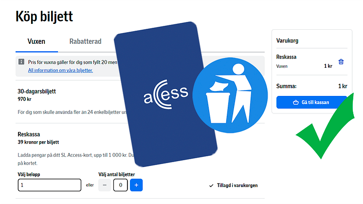 Nu kommer det även gå att ladda på det nya gröna kortet hos SL:s ombud och spärrkiosker. Det innebär samtidigt att försäljningen av periodbiljetter till de gamla blå Access-korten upphör hos ombud och spärrkiosker 10 maj, men finns kvar ett tag till i webbutiken på sl.se och biljettautomater som fortfarande är i bruk. Även försäljning av reskassa till Access-korten upphör hos ombuden 10 maj, men det går fortsatt att ladda på reskassa i spärrkioskerna till tunnelbanan och pendeltåget som minst fram till i höst.