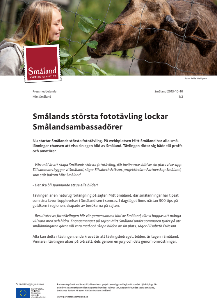 Nu startar Smålands största fototävling. På webbplatsen Mitt Småland har alla smålänningar chansen att visa sin egen bild av Småland. Tävlingen riktar sig både till proffs och amatörer och ett urval av