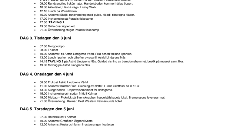 Under fyra webbTV-sända program i juni, kommer vi att kunna följa de fem tyska familjerna när de bjuds på unika upplevelser av Smålands natur, kultur och äventyr. Polkagrisbakning, ballongflygning, glas-blåsning, älgmatning och fisketävling är bara några av de många upplevelser som står på programmet.