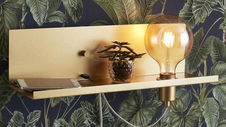 Skapa en trivsam atmosfär med personliga detaljer som växter, dekorativa föremål eller belysning. Som exempelvis denna hylla med lampsockel, dimmer och USB. Små justeringar kan göra stor skillnad för hur ditt hemmakontor känns att arbeta i.
