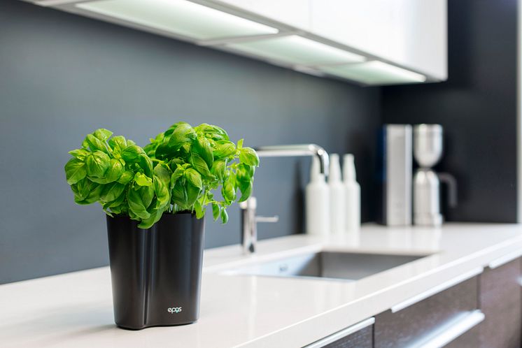 Bönan i svart på köksbänken.