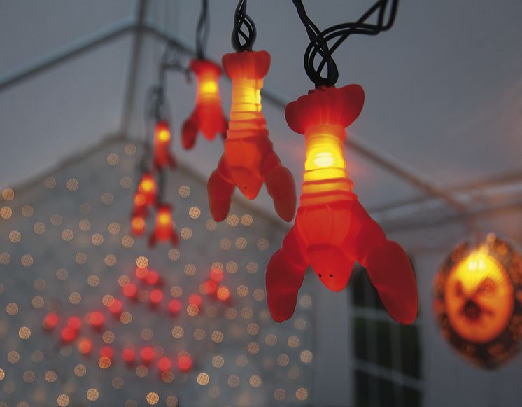 Dekorera och ljussätt kräftskivan eller hummerfesten med en kul ljusslinga med lysande kräftor eller humrar.