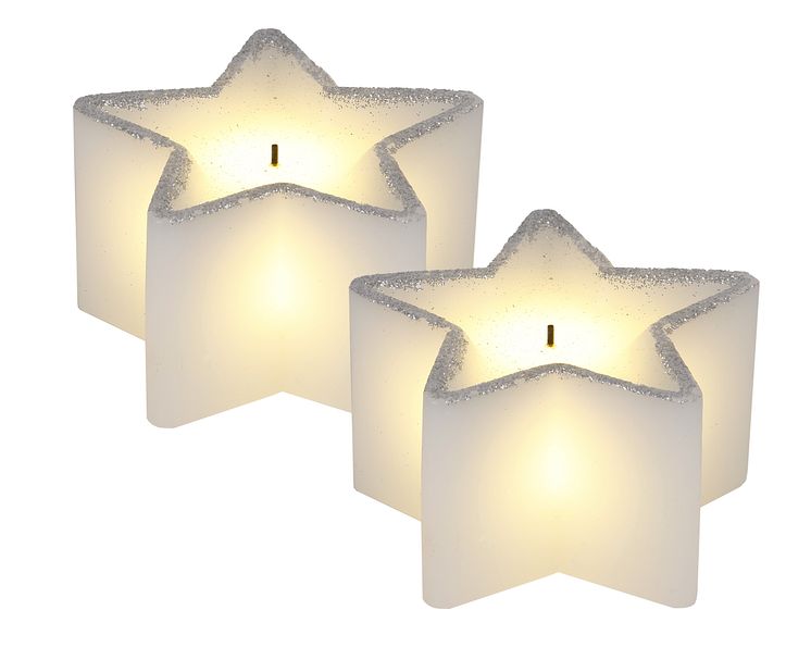 Stjärnformat batteriljus 2-pack, frilagd-vit