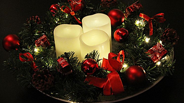 Färdigdekorerad adventskrans för ytterdörren eller inomhus med vackra kottar, band, paket och kulor men också med 20 stycken ljuspunkter som drivs med batteri från ett litet vidhängande batteripack som enkelt göms bakom julkransen. En riktigt fin krans som ger fin adventsstämning på sekunden. Vill du inte hänga kransen på dörren kan den läggas på bordet och eventuellt kan du placera batteridrivna blockljus eller äkta vara i hålet i mitten.