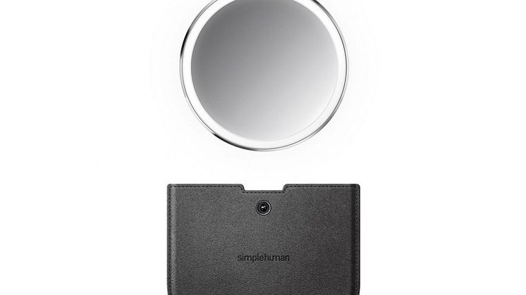 Ett snyggt och praktiskt sensorfodral följer med som skyddar spegeln från repor och när den tas ut ur fodralet tänds lamporna automatiskt. Styrkan på lamporna kan justeras mellan 300 och 650 lux genom att genom ett tryck på knappen på sidan av spegeln. Lamporna kan även stängas av helt genom att hålla in knappen i ca en sekund. När du är färdig med spegeln, släcks lamporna när du stoppar in den i fodralet igen.