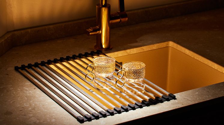 Magissos hoprullbara torkställning gör att du kan utnyttja ytan över diskhon och få en smart avställningsyta att ställa disk, kastruller och livsmedel på. Torkställningen hjälper dig att ta vara på det köksutrymme du redan har och när du inte använder ställningen är det bara att rulla ihop och förvara i kökslådan.