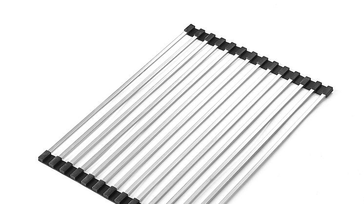 Du kan även använda torkställningen som ett underlägg för varma kastruller och stekpannor. Du kan dessutom använda den som en avrinningsyta när du sköljer dina grönsaker. Torkställningen är tillverkad av livsmedelsgodkända material och passar diskhoar som är mindre än 46 cm djupa. De mjuka silikonkanterna ger ett bra grepp och ser till att den ligger stabilt. När du inte använder torkställningen kan du bara rulla ihop den och förvara i en låda. Torkställningen kan diskas i diskmaskinen. Välj mellan färgerna rostfritt stål eller rainbow.