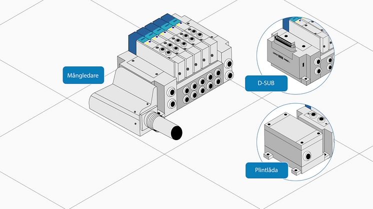 Ventilserien SY 3000-7000 ger full kontroll och flexibilitet Tack vare sitt modulära utförande och sina många olika tillbehör går SMCs ventilserie SY3000-7000 att skräddarsy efter aktuellt behov vilket ger maximal kontroll och styrning av luftdistributionen. Olika ventilstorlekar kan monteras på samma ramp, ventilerna kan styras med fältbussystem som Profinet, Ethernet/IP, EtherCat, Profibus från alla stora PLC-leverantörer och det går enkelt att arbeta med olika tryckzoner i en och samma ramp. Med hjälp av en avstängningsmodul går det att byta ut en ventil utan att bryta luften till övriga ventiler, något som tar bort onödiga och kostsamma driftstopp. För att möjliggöra manuell aktivering av ventilen är den försedd med en handmanöver som finns i ett antal olika utföranden, bland annat en för SY unik skjut- och låsbar.