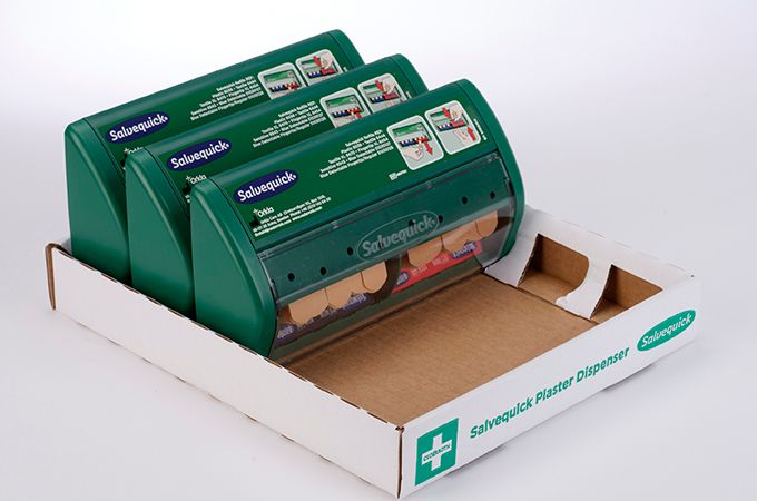 För att möta dessa krav hjälpte vårt erfarna team dem med att utveckla en ny förpackningslösning. Vi designade en 100% pappersbaserad transport- och hyllförpackning i wellpapp, som både fixerar och skyddar plåsterautomaterna under transport men också framhäver dem effektivt i butiken.