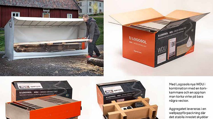 Ett exempel på det sistnämnda är Logosols nya virkestorkaggregat WDU, som i kombination med en specialutformad torkkammare och en app löser problemet med att på några veckor torka virke som kan användas till finsnickerier utan att man riskerar sprickbildning.