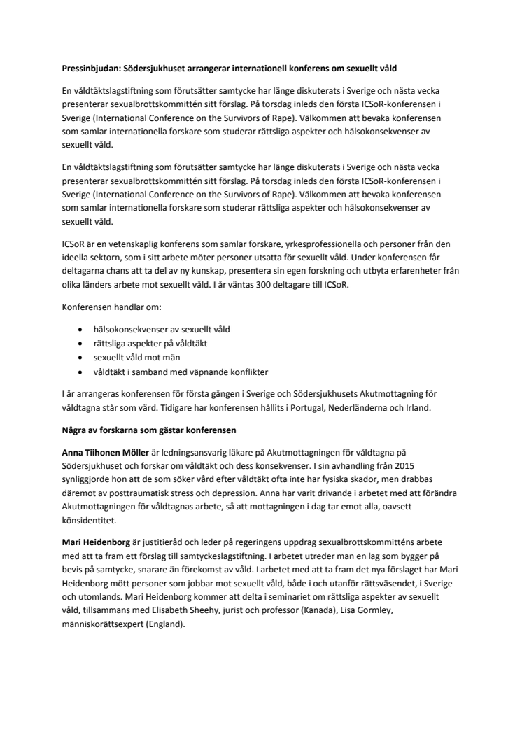 Pressinbjudan: Södersjukhuset arrangerar internationell konferens om sexuellt våld