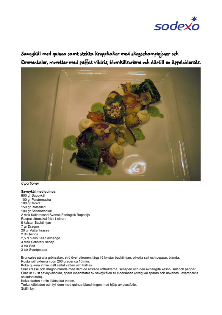 Restaurang Stjärnan - Savoykål med quinoa samt stekta kroppkakor med skogschampinjoner och Emmentaler, morötter