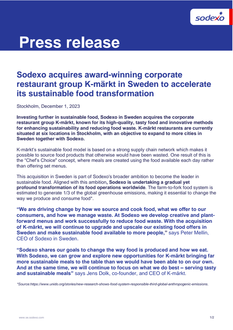 • Sodexo acquires award-winning corporate restaurant group K-märkt in Sweden to accelerate its sustainable food transformation .pdf