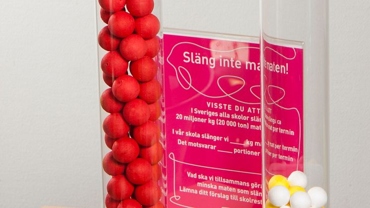 Genom att visualisera svinnet med hjälp av bollar och rör ska eleverna bli medvetna om de mängder mat som slängs och de uppsatta mål som finns för varje enskild skola. Bollarna som läggs i rören motsvarar en viss mängd matsvinn.