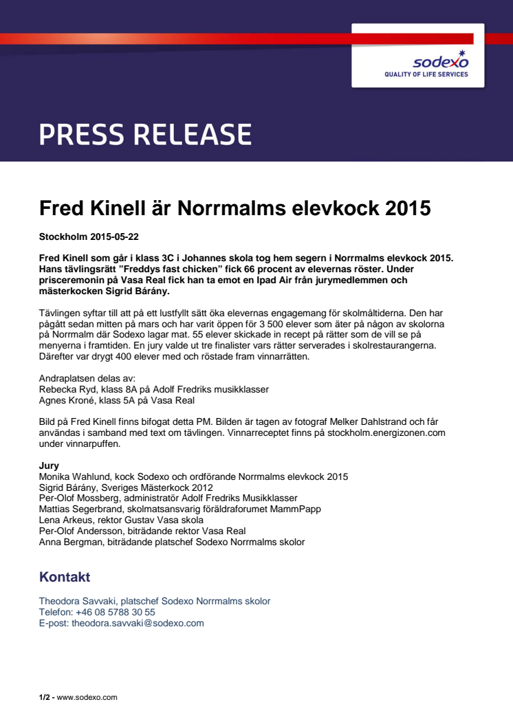 Bild på Fred Kinell finns bifogat detta PM. Bilden är tagen av fotograf Melker Dahlstrand och får användas i samband med text om tävlingen. Vinnarreceptet finns på stockholm.energizonen.com under vinnarpuffen.