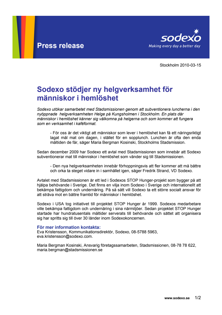 Eva Kristensson, Kommunikationsdirektör, Sodexo, 08-5788 5963, eva.kristensson@sodexo.com