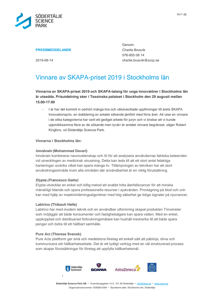 • Vinnare av SKAPA-priset 2019 i Stockholms län​