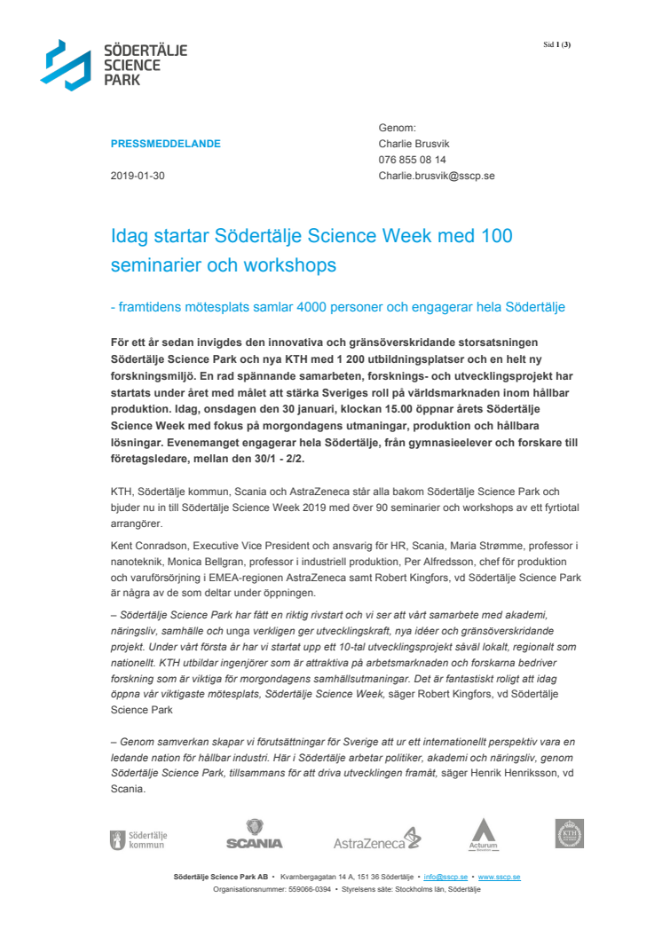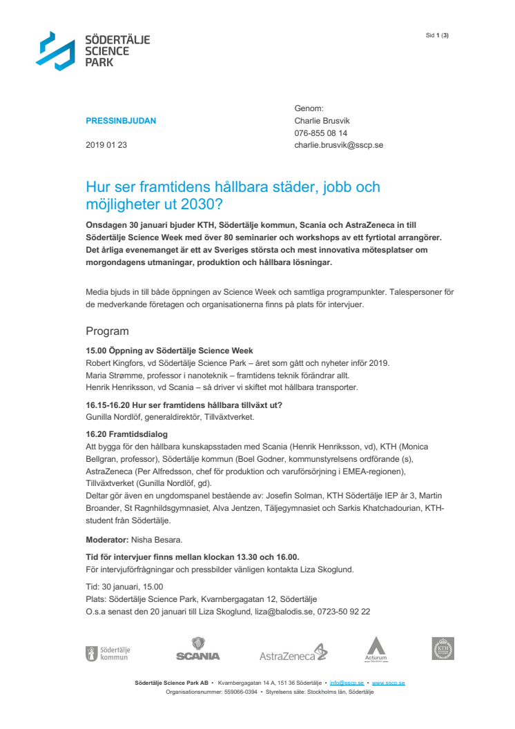 • Pressinbjudan Södertälje Science Week - Hur ser framtidens hållbara städer, jobb och möjligheter ut 2030?