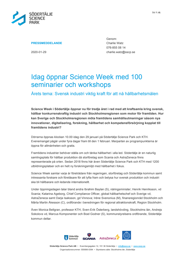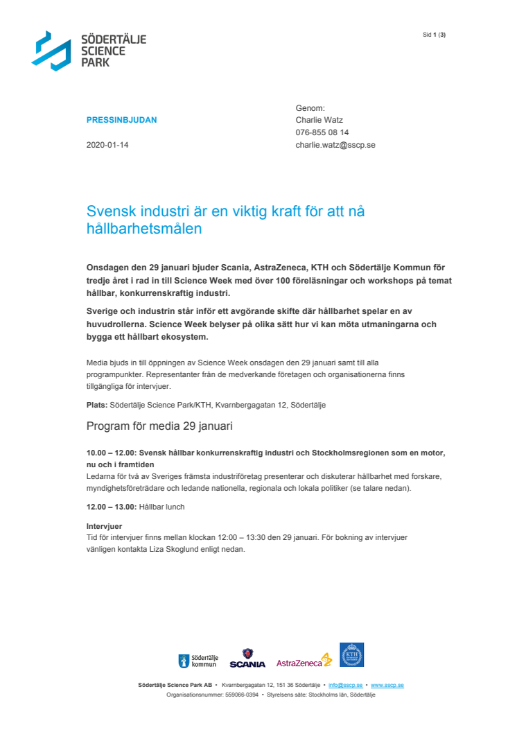 • Påminnelse pressinbjudan Science Week: Svensk industri är en viktig kraft för att nå hållbarhetsmålen