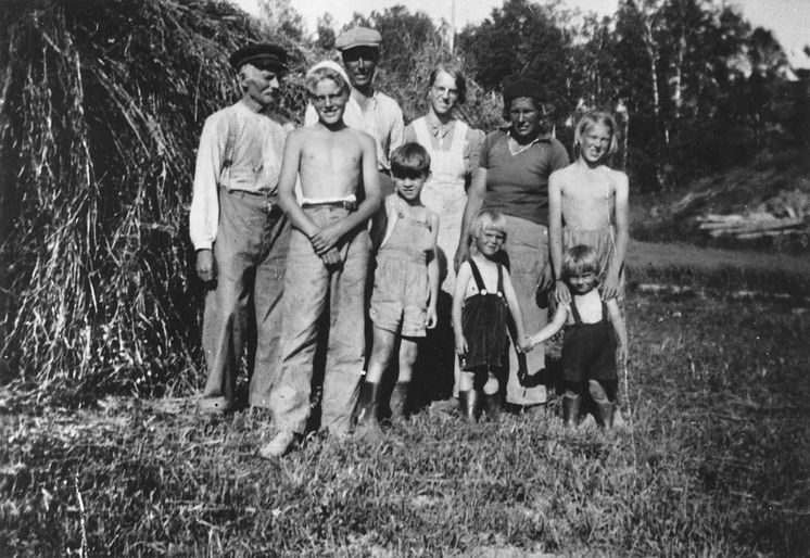 Utställning. Sörmlands museum, Nyköping. Alla som inte var inkallade till militärtjänstgöring behövde hjälpas åt med arbetet på gården. Här står familjen Drott som arrenderade Litselby Särgård i Västerljung under 1940-talet.