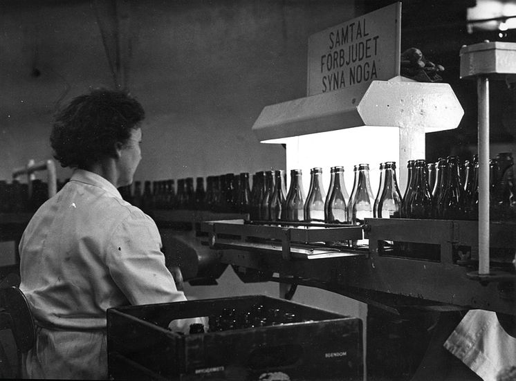 Gnesta Bryggeri, troligtvis sent 1950-tal. Här gäller noggrannhet, samtal på arbetstid är förbjudet.