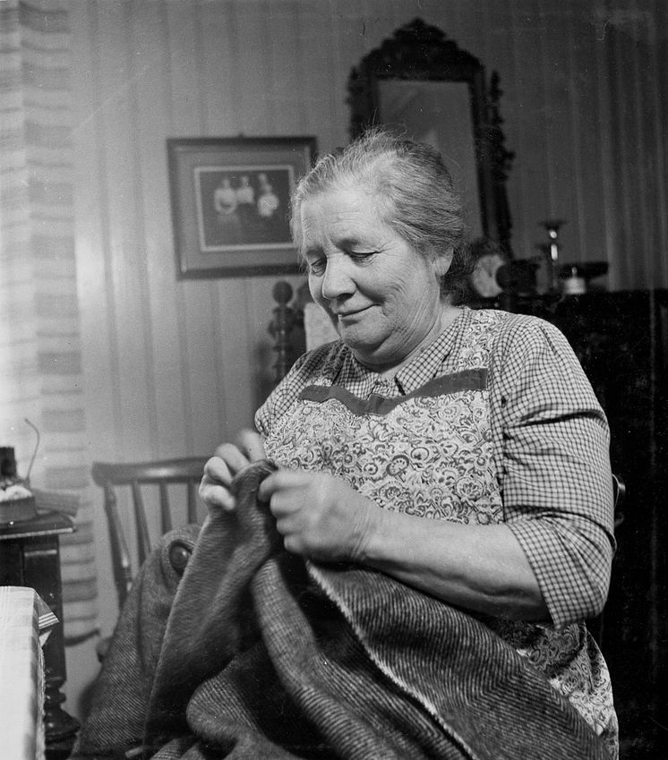 Hilda Andersson kantar pläd 1952.