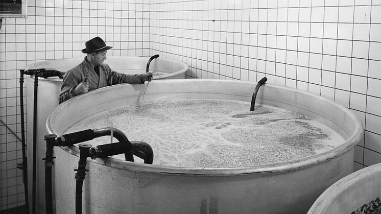 Gnesta Bryggeri omkring 1960. Ölet jäste i stora jäskar innan det placerades i lagertankar.
