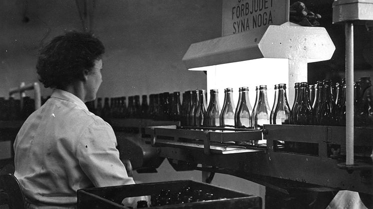 Gnesta Bryggeri, troligtvis sent 1950-tal. Här gäller noggrannhet, samtal på arbetstid är förbjudet.